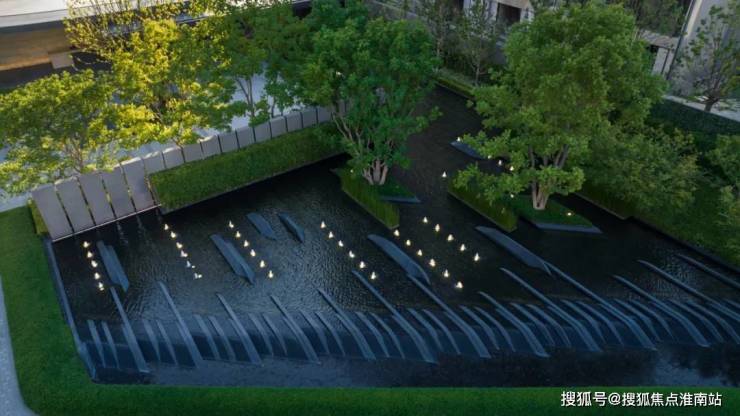 引水入园、以水带路,在低密度的园林中,我们正真看到的是4000平米的水景,仿佛把这段滨江搬到了社区内。随着不同的场景和光线变化,形成归家动线上的光影变奏。